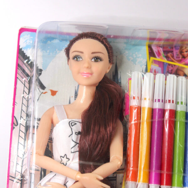 | Alia Fashion Art Doll | Extra Dress And Sketch Pens (29 CM) | 📝 Product Description (for website or online listing) Unleash your creativity with the Alia Fashion Art Doll — where fashion meets imagination! 🌈✨ This unique doll set includes a beautiful Alia doll, an extra white dress, and colour sketch pens, allowing kids to design and customize their own stylish outfits. With every stroke, children can explore their artistic side, express creativity, and bring Alia’s wardrobe to life in their own colorful way! Crafted from premium, child-safe materials, Alia Fashion Art encourages hands-on learning, imaginative play, and artistic expression. Perfect for creative kids, fashion lovers, or as a unique gift for birthdays and special occasions. 🎁 Includes: 1 Alia Fashion Art Doll 1 Extra White Dress for Coloring 4–6 Colour Sketch Pens Let your child create, color, and shine with Alia — the doll that turns imagination into art! |