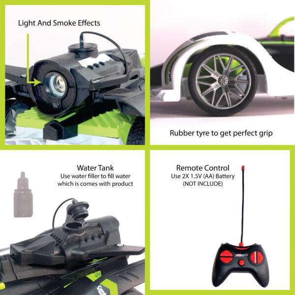 High-Speed Remote Control (RC) Car With Sporty Green Design And Smoke Function.